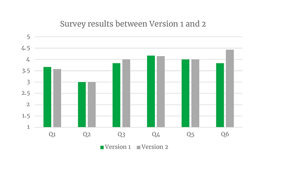 Version 1 and 2 performed similarly in the survey, suggesting that the location of the quiz doesn’t make it feel significantly quicker